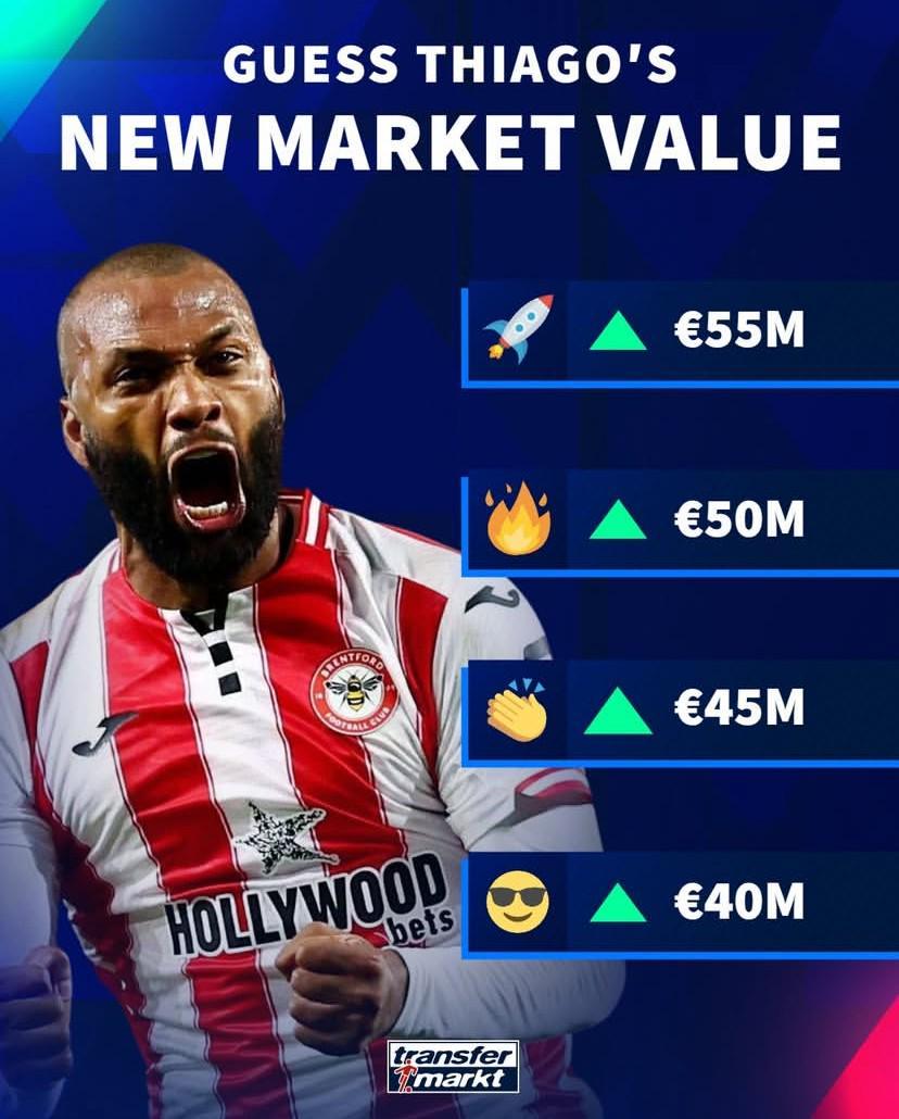 德转此次对伊戈尔-蒂亚戈的身价更新进行了预热,对于这名目前身价3500万欧元的巴西前锋,德转给出了四个更新选项,其中最高涨至5500万欧元,其次是5000万欧元、4500万欧元以及4000万欧元。